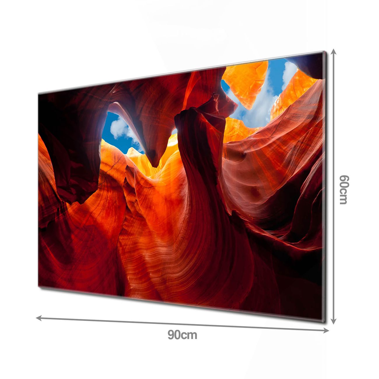 Material: 4mm Sicherheitsglas mit Metallrückwand Eigenschaften: beschreibbar, magnetisch, kratzfest Maße: 90x60x0,6cm, 8,10kg schwer Motiv Nummer 12033 Antelope Canyon 2 Zubehör: inklusive 4 Neodym-Magnete