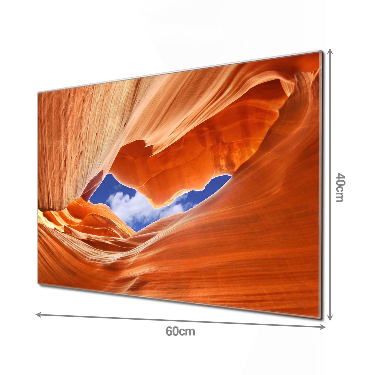 Material: 4mm Sicherheitsglas mit Metallrückwand Eigenschaften: beschreibbar, magnetisch, kratzfest Maße: 60x40x0,6cm, 3,6kg schwer Motiv Nummer 12044 Antelope Canyon 3 Zubehör: inklusive 4 Neodym-Magnete