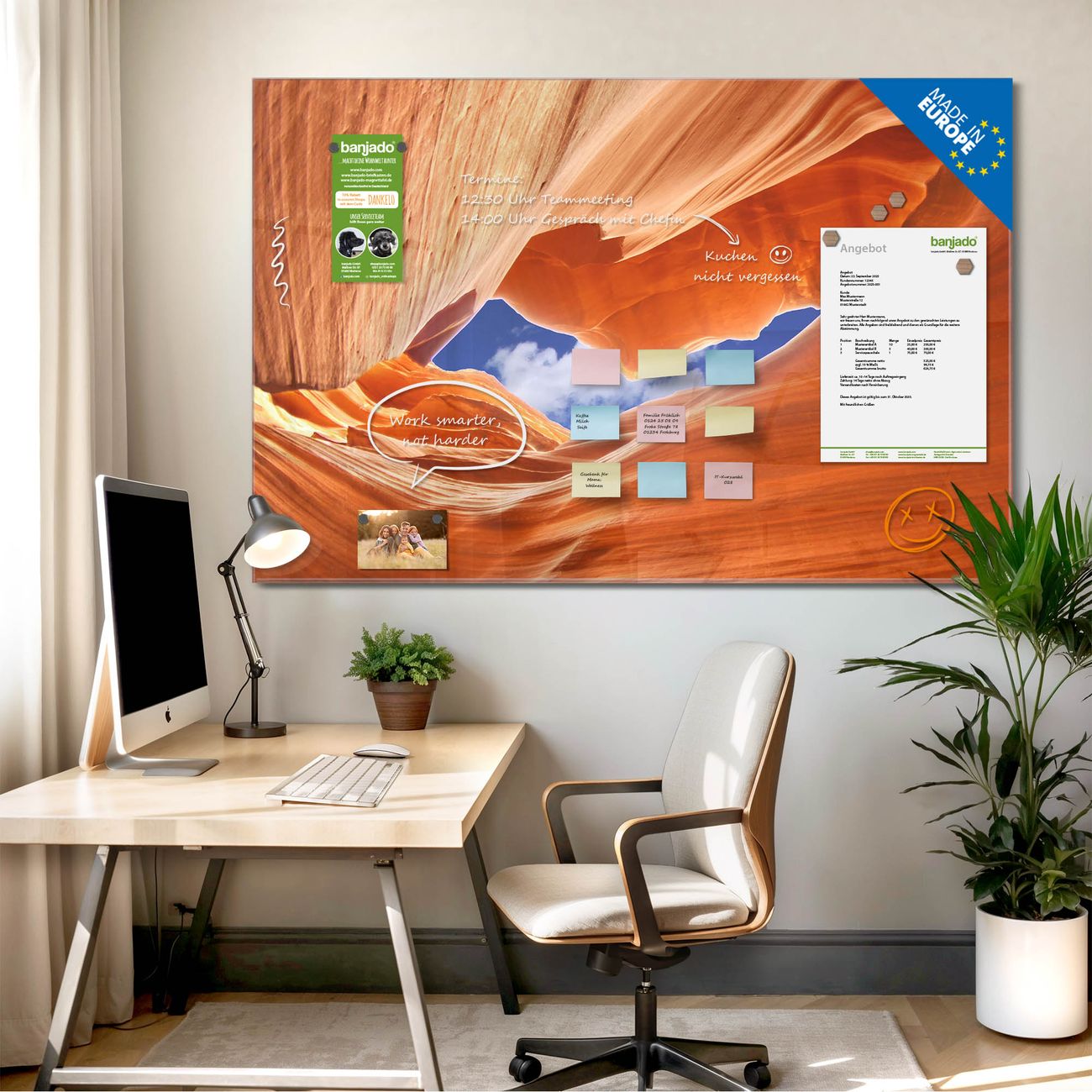 Die banjado Glas Magnettafel mit dem Motiv Motiv Antelope Canyon 3 verbindet Funktionalität mit Stil. Sie ersetzt das Zettelchaos durch klare Strukturen und bringt dabei eine warme, natürliche Atmosphäre in Ihr Zuhause. Ob im Büro, in der Küche oder im Eingangsbereich - dieses Design-Board zieht Blicke an und sorgt für Ordnung mit Charakter.