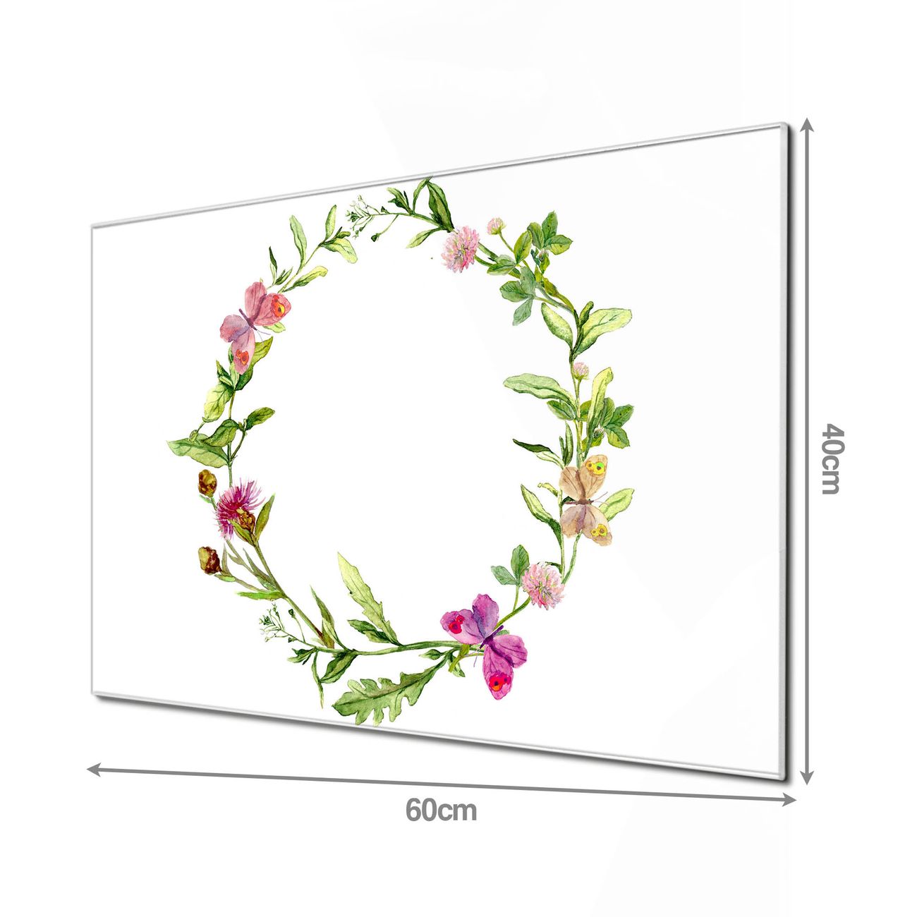 Material  4mm Sicherheitsglas mit Metallrückwand Eigenschaften  beschreibbar, magnetisch, kratzfest Maße  60x40x0,6cm, 3,6kg schwer Motiv  Nummer 12975 Aquarell Blumenring Zubehör  inklusive 4 Neodym-Magnete