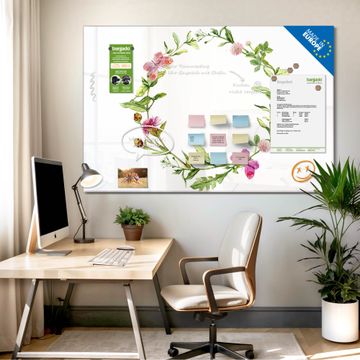 Die banjado Glas Magnettafel mit dem Motiv Motiv Aquarell Blumenring verbindet Funktionalität mit Stil. Sie ersetzt das Zettelchaos durch klare Strukturen und bringt dabei eine warme, natürliche Atmosphäre in Ihr Zuhause. Ob im Büro, in der Küche oder im Eingangsbereich - dieses Design-Board zieht Blicke an und sorgt für Ordnung mit Charakter.