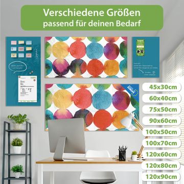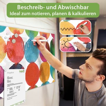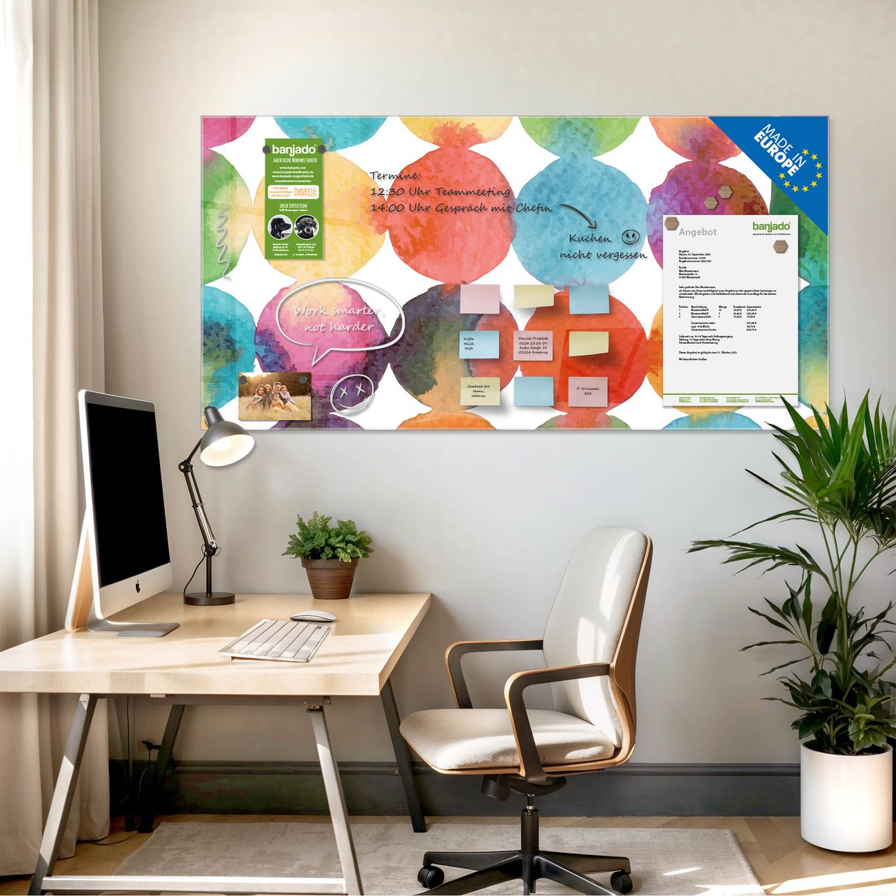 Die banjado Glas Magnettafel mit dem Motiv Motiv Aquarell Kreise verbindet Funktionalität mit Stil. Sie ersetzt das Zettelchaos durch klare Strukturen und bringt dabei eine warme, natürliche Atmosphäre in Ihr Zuhause. Ob im Büro, in der Küche oder im Eingangsbereich - dieses Design-Board zieht Blicke an und sorgt für Ordnung mit Charakter.