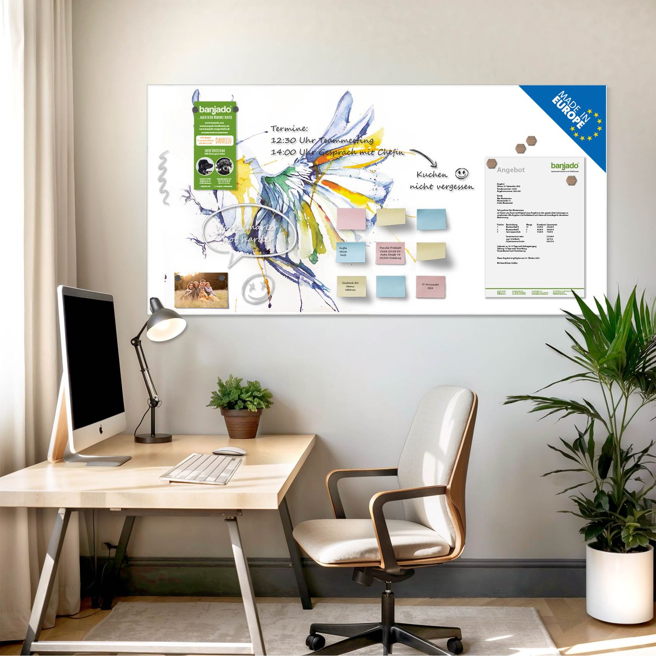 Jede Glas Magnettafel wird in unserer Werkstatt von Hand gefertigt und sorgfältig geprüft. So erhalten Sie ein echtes Qualitätsprodukt, das Funktion und Ästhetik perfekt vereint.?? Warum banjado?