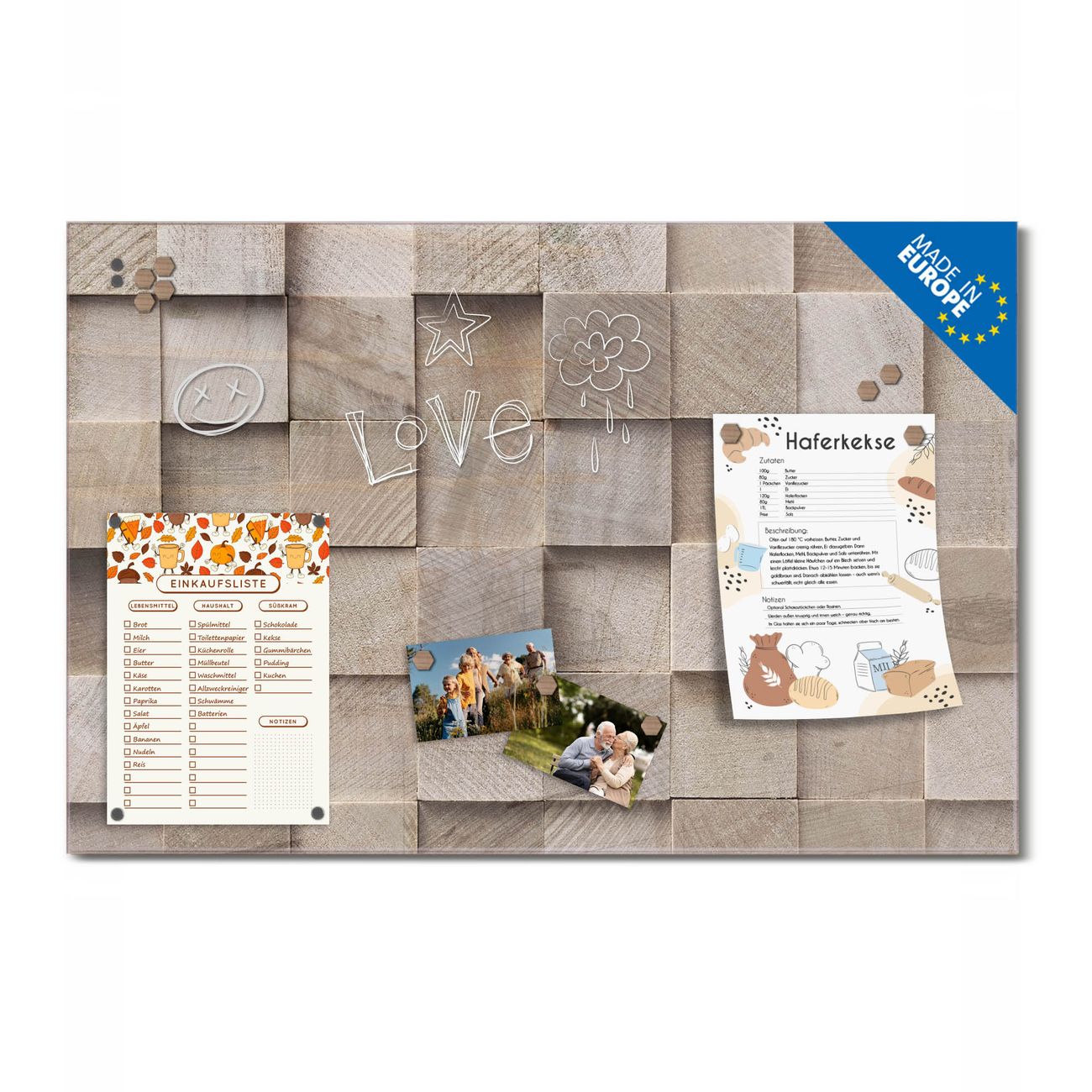 Die banjado Glas Magnettafel mit dem Motiv Motiv Bauklötze Relief verbindet Funktionalität mit Stil. Sie ersetzt das Zettelchaos durch klare Strukturen und bringt dabei eine warme, natürliche Atmosphäre in Ihr Zuhause. Ob im Büro, in der Küche oder im Eingangsbereich - dieses Design-Board zieht Blicke an und sorgt für Ordnung mit Charakter.