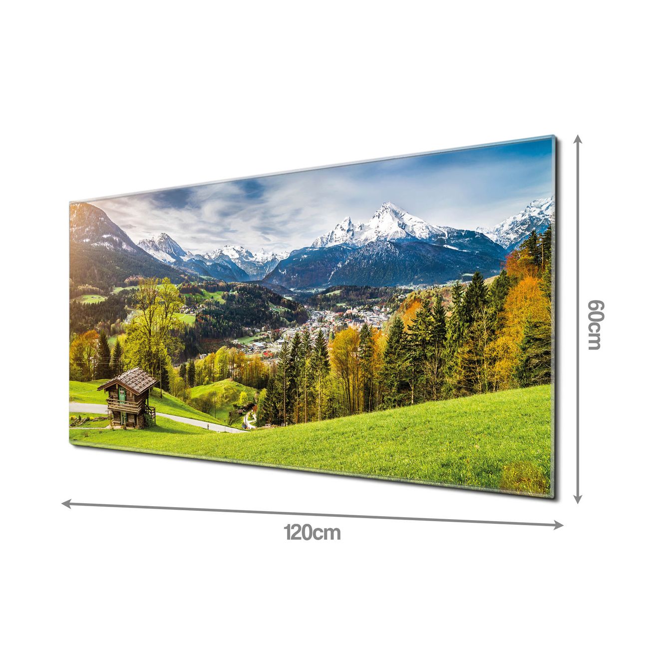 Material: 4mm Sicherheitsglas mit Metallrückwand Eigenschaften: beschreibbar, magnetisch, kratzfest Maße: 120x60x0,6cm, 10,80kg schwer Motiv Nummer 11208 Berchtesgadener Land Zubehör: inklusive 4 Neodym-Magnete