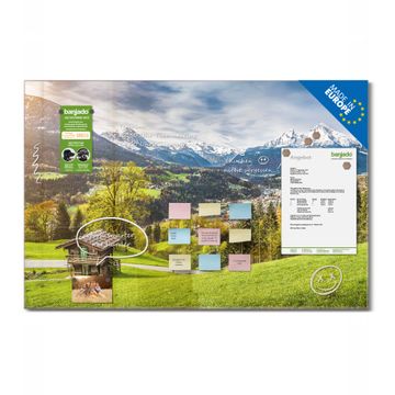 Material: 4mm Sicherheitsglas mit Metallrückwand Eigenschaften: beschreibbar, magnetisch, kratzfest Maße: 120x80x0,6cm, 14,40kg schwer Motiv Nummer 11208 Berchtesgadener Land Zubehör: inklusive 4 Neodym-Magnete