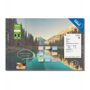 Die banjado Glas Magnettafel mit dem Motiv Motiv Bergsee verbindet Funktionalität mit Stil. Sie ersetzt das Zettelchaos durch klare Strukturen und bringt dabei eine warme, natürliche Atmosphäre in Ihr Zuhause. Ob im Büro, in der Küche oder im Eingangsbereich - dieses Design-Board zieht Blicke an und sorgt für Ordnung mit Charakter.
