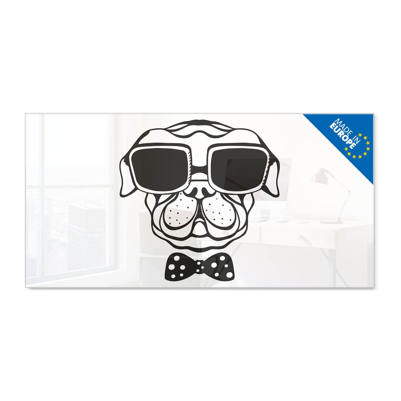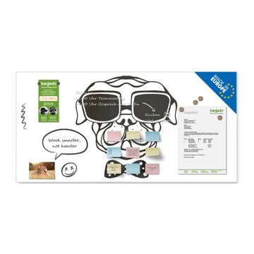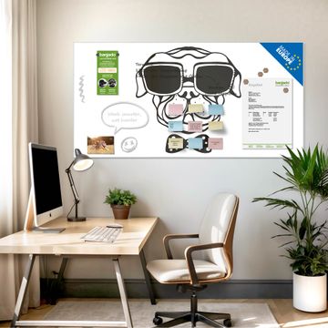 Material: 4mm Sicherheitsglas mit Metallrückwand Eigenschaften: beschreibbar, magnetisch, kratzfest Maße: 120x60x0,6cm, 10,80kg schwer Motiv Nummer 12118 Big Boss Zubehör: inklusive 4 Neodym-Magnete