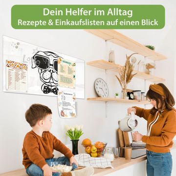 Auf der glatten Glasoberfläche lassen sich Termine, Rezepte oder Notizen ganz einfach mit Kreidestiften festhalten und rückstandslos entfernen. Starke Neodym-Magnete halten Ihre wichtigsten Erinnerungen sicher an Ort und Stelle. So entsteht Ihre ganz persönliche Ideenwand - jeden Tag neu.