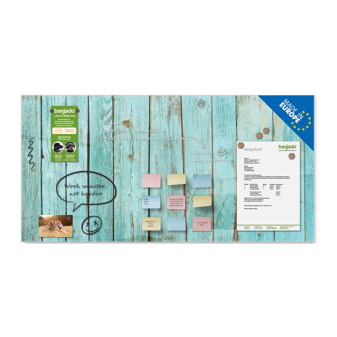 Glas Magnettafel im Querformat Motiv Blaues Holz