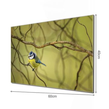 Material  4mm Sicherheitsglas mit Metallrückwand Eigenschaften  beschreibbar, magnetisch, kratzfest Maße  60x40x0,6cm, 3,6kg schwer Motiv  Nummer 12828 Blaumeise im Baum Zubehör  inklusive 4 Neodym-Magnete