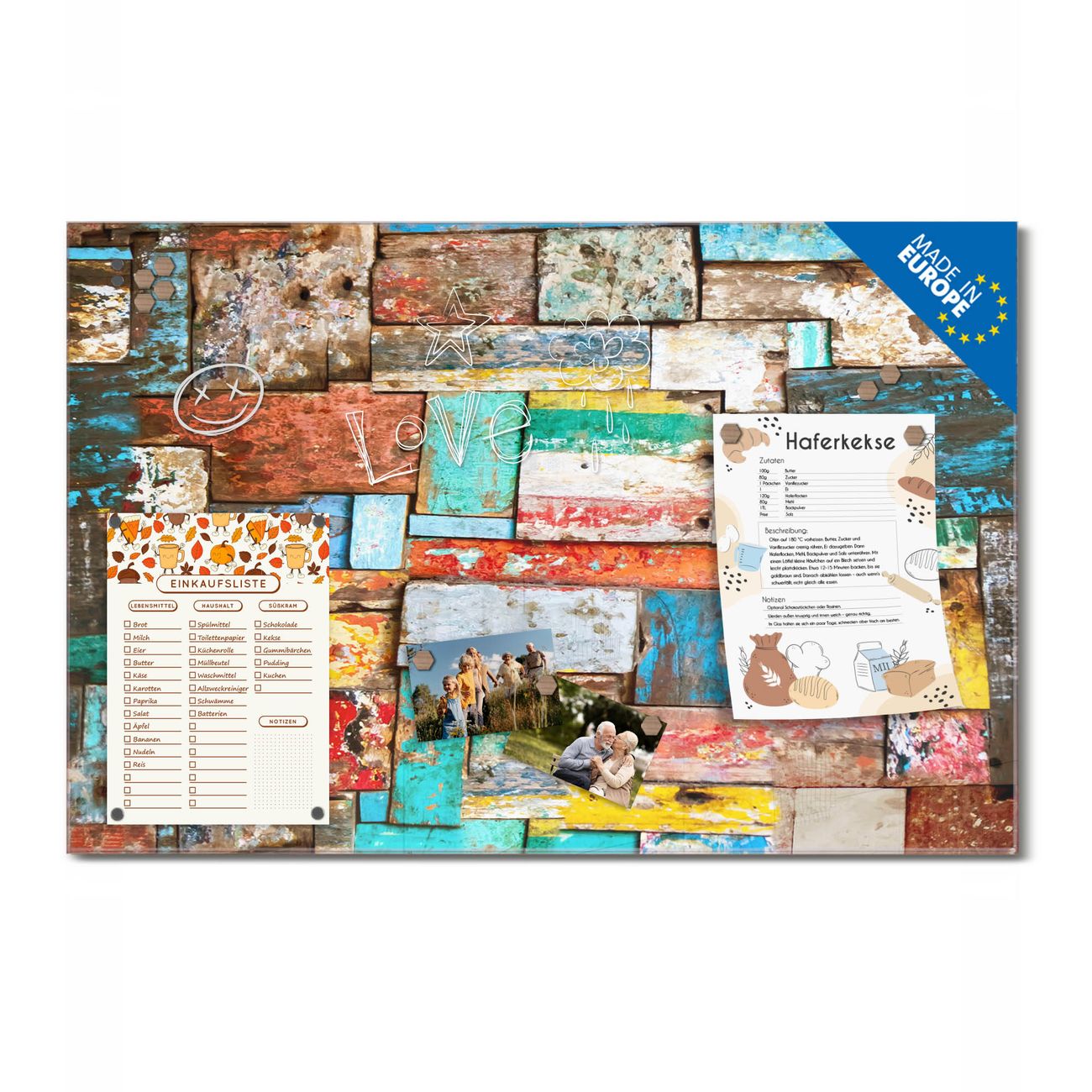 Ein Stück Design, das Ihren Alltag organisiert. Schreiben, heften, inspirieren - alles an einem Ort. Qualität, die man spürt. Montage leicht gemacht. Handwerk mit Herz - veredelt in Sachsen. Einzigartiges Design mit Motiv Motiv Bunte Holzschindeln Beschreibbare Glasoberfläche, leicht zu reinigen Starke Magnetkraft durch Stahlrückwand Inklusive 4 Neodym-Magneten Flexible Montageoptionen Handveredelt in Sachsen - Qualität, die bleibt