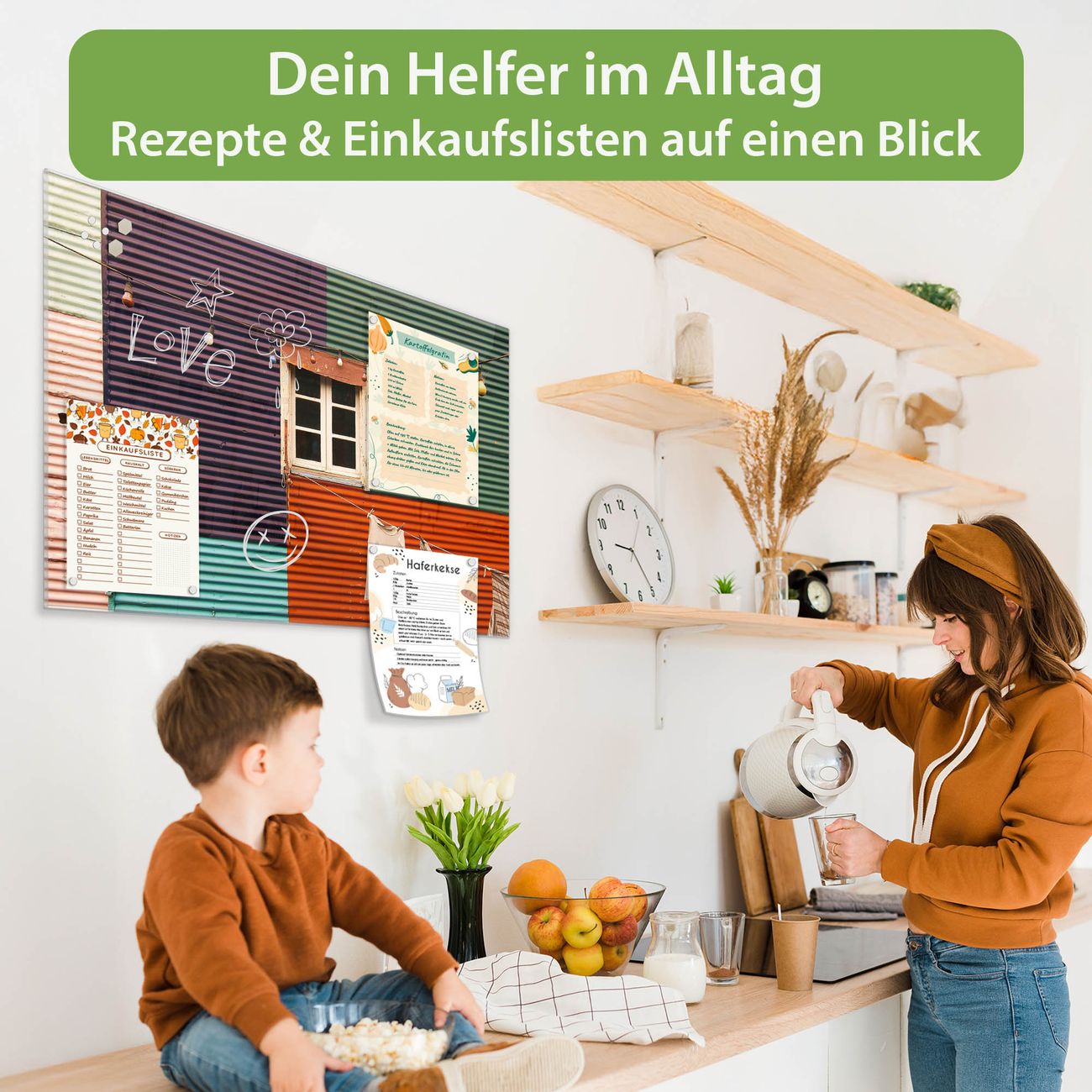Ein Stück Design, das Ihren Alltag organisiert. Schreiben, heften, inspirieren - alles an einem Ort. Qualität, die man spürt. Montage leicht gemacht. Handwerk mit Herz - veredelt in Sachsen. Einzigartiges Design mit Motiv Motiv Buntes Haus Beschreibbare Glasoberfläche, leicht zu reinigen Starke Magnetkraft durch Stahlrückwand Inklusive 4 Neodym-Magneten Flexible Montageoptionen Handveredelt in Sachsen - Qualität, die bleibt