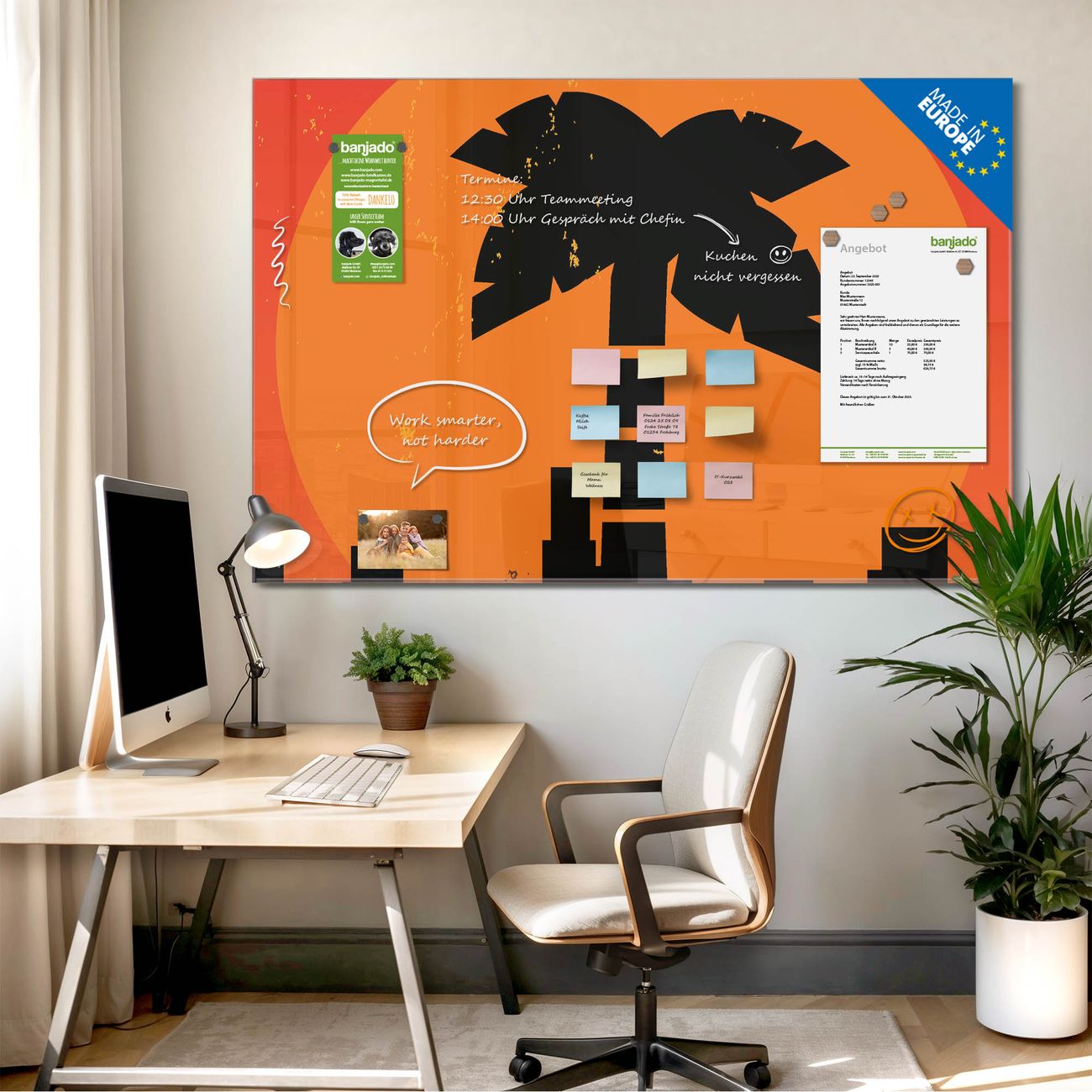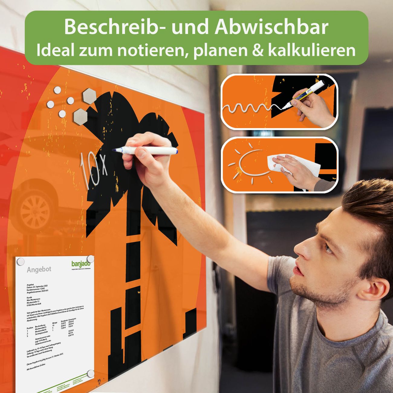Jede Glas Magnettafel wird in unserer Werkstatt von Hand gefertigt und sorgfältig geprüft. So erhalten Sie ein echtes Qualitätsprodukt, das Funktion und Ästhetik perfekt vereint.?? Warum banjado?