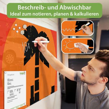 Auf der glatten Glasoberfläche lassen sich Termine, Rezepte oder Notizen ganz einfach mit Kreidestiften festhalten und rückstandslos entfernen. Starke Neodym-Magnete halten Ihre wichtigsten Erinnerungen sicher an Ort und Stelle. So entsteht Ihre ganz persönliche Ideenwand - jeden Tag neu.