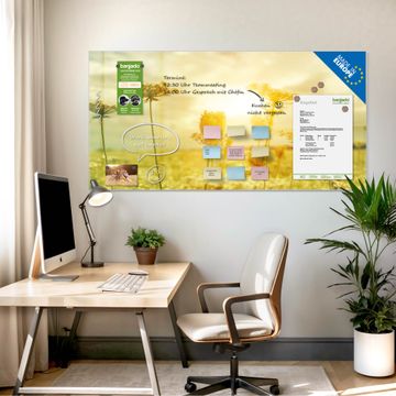 Gefertigt aus gehärtetem Sicherheitsglas mit einer magnetischen Rückwand aus Stahl überzeugt diese Magnettafel durch Stabilität und Langlebigkeit. Die Oberfläche bleibt dauerhaft brillant und pflegeleicht, selbst bei täglicher Nutzung.