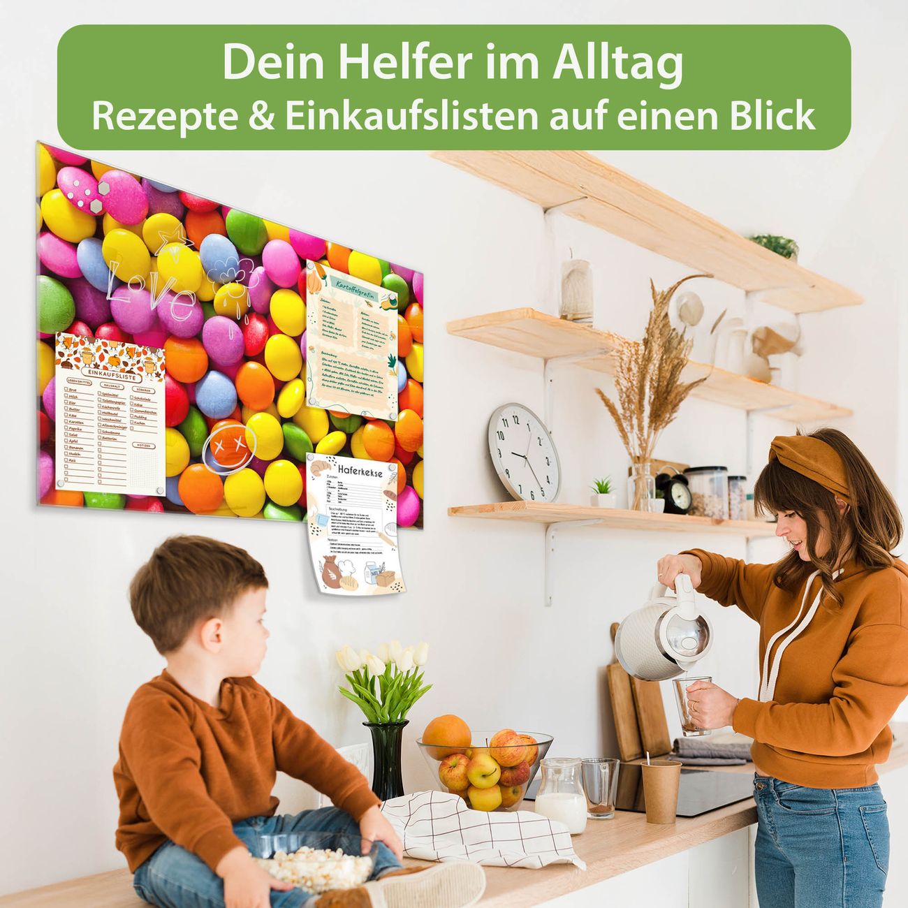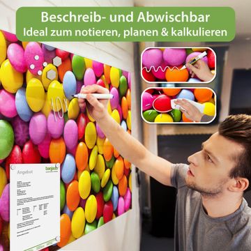 Die banjado Glas Magnettafel im Querformat mit Motiv Motiv Dragees bringt Ordnung in Ihr Zettelchaos. Fotos, Termine, Notizen oder Rezepte lassen Sich hier stilvoll mit Magneten ordnen, so behalten Sie alles Wichtige im Blick. Das Memoboard aus Glas ist beschreibbar und wird Ihnen bereits mit 4 Neodym-Magneten geliefert. Das Format bietet Ihnen ausreichend Platz um alle wichtigen Informationen im Blick zu behalten.