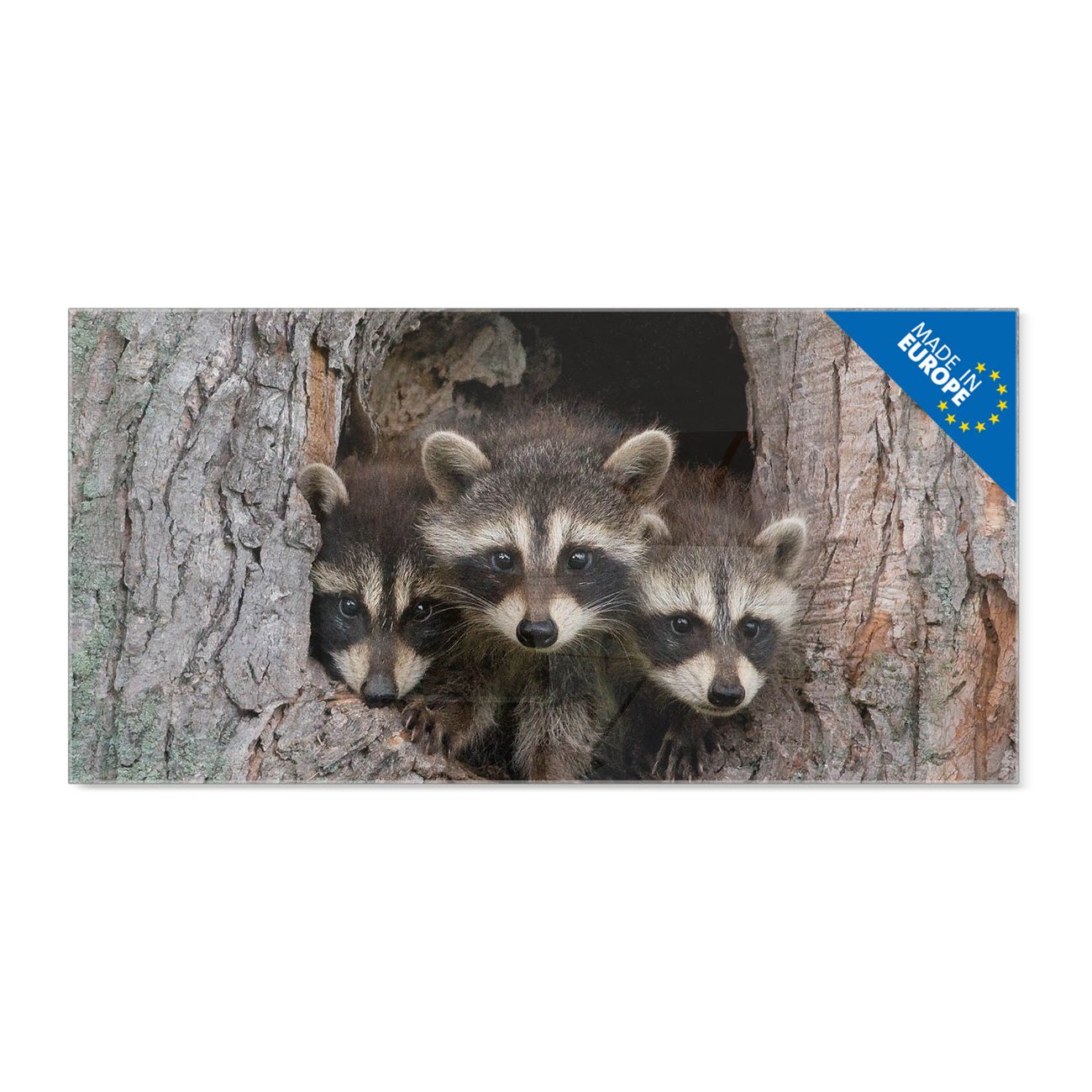 Glas Magnettafel im Querformat Motiv Drei Waschbären