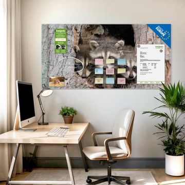 Die banjado Glas Magnettafel mit dem Motiv Motiv Drei Waschbären verbindet Funktionalität mit Stil. Sie ersetzt das Zettelchaos durch klare Strukturen und bringt dabei eine warme, natürliche Atmosphäre in Ihr Zuhause. Ob im Büro, in der Küche oder im Eingangsbereich - dieses Design-Board zieht Blicke an und sorgt für Ordnung mit Charakter.