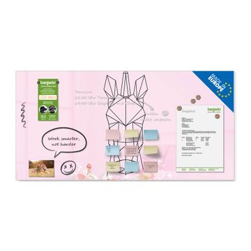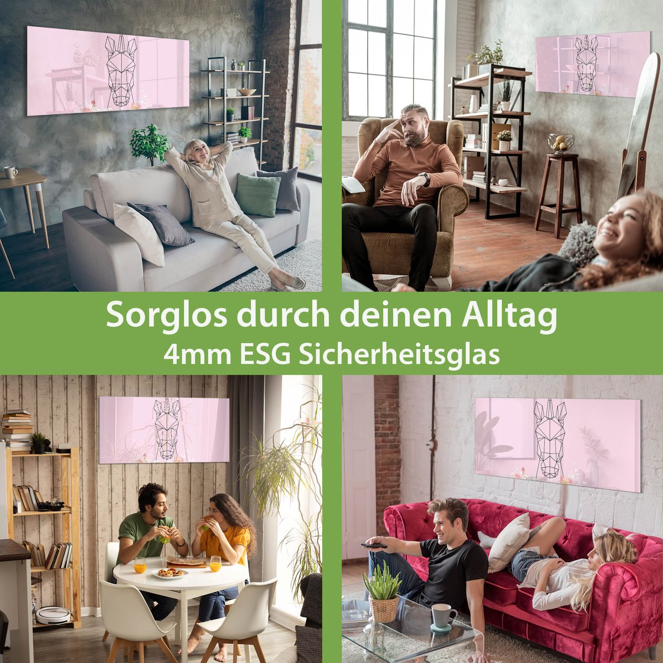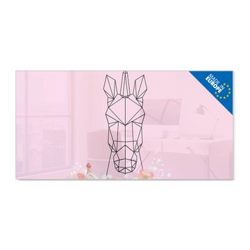 Material: 4mm Sicherheitsglas mit Metallrückwand Eigenschaften: beschreibbar, magnetisch, kratzfest Maße: 120x60x0,6cm, 10,80kg schwer Motiv Nummer 12947 Einhorn Poygon Zubehör: inklusive 4 Neodym-Magnete