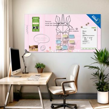 Auf der glatten Glasoberfläche lassen sich Termine, Rezepte oder Notizen ganz einfach mit Kreidestiften festhalten und rückstandslos entfernen. Starke Neodym-Magnete halten Ihre wichtigsten Erinnerungen sicher an Ort und Stelle. So entsteht Ihre ganz persönliche Ideenwand - jeden Tag neu.