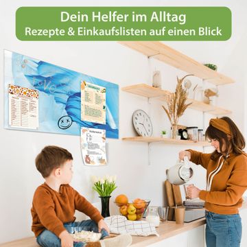 Auf der glatten Glasoberfläche lassen sich Termine, Rezepte oder Notizen ganz einfach mit Kreidestiften festhalten und rückstandslos entfernen. Starke Neodym-Magnete halten Ihre wichtigsten Erinnerungen sicher an Ort und Stelle. So entsteht Ihre ganz persönliche Ideenwand - jeden Tag neu.