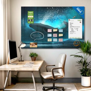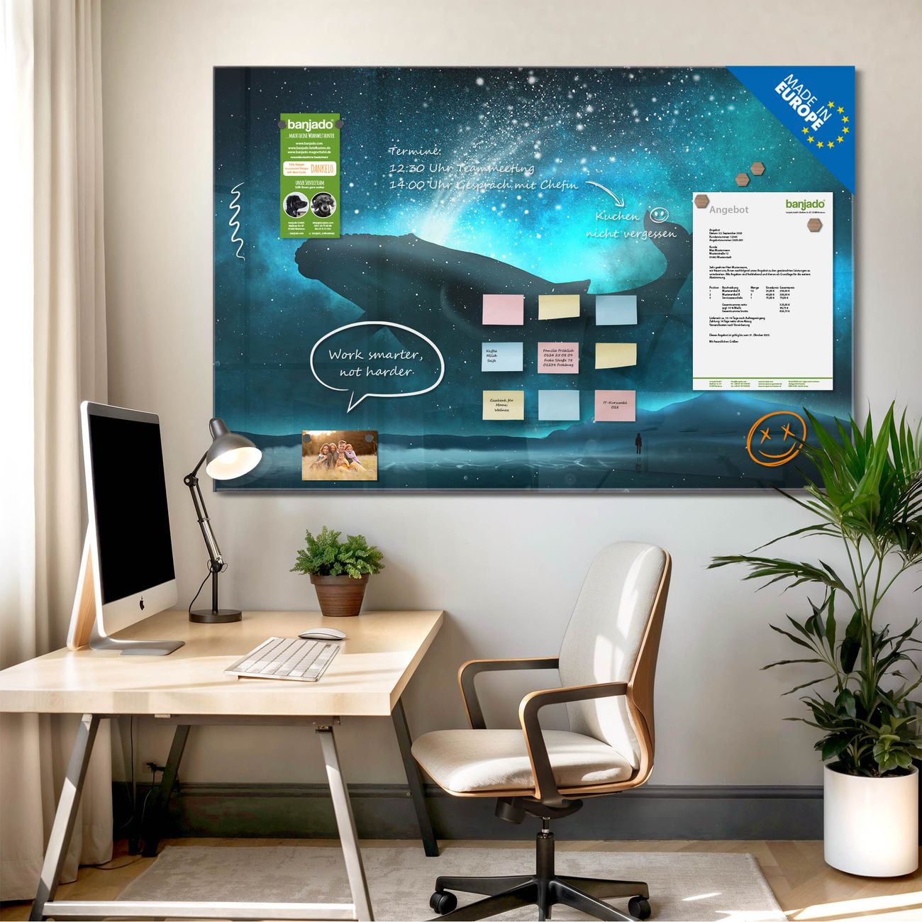 Die banjado Glas Magnettafel mit dem Motiv Motiv fliegender Wal verbindet Funktionalität mit Stil. Sie ersetzt das Zettelchaos durch klare Strukturen und bringt dabei eine warme, natürliche Atmosphäre in Ihr Zuhause. Ob im Büro, in der Küche oder im Eingangsbereich - dieses Design-Board zieht Blicke an und sorgt für Ordnung mit Charakter.