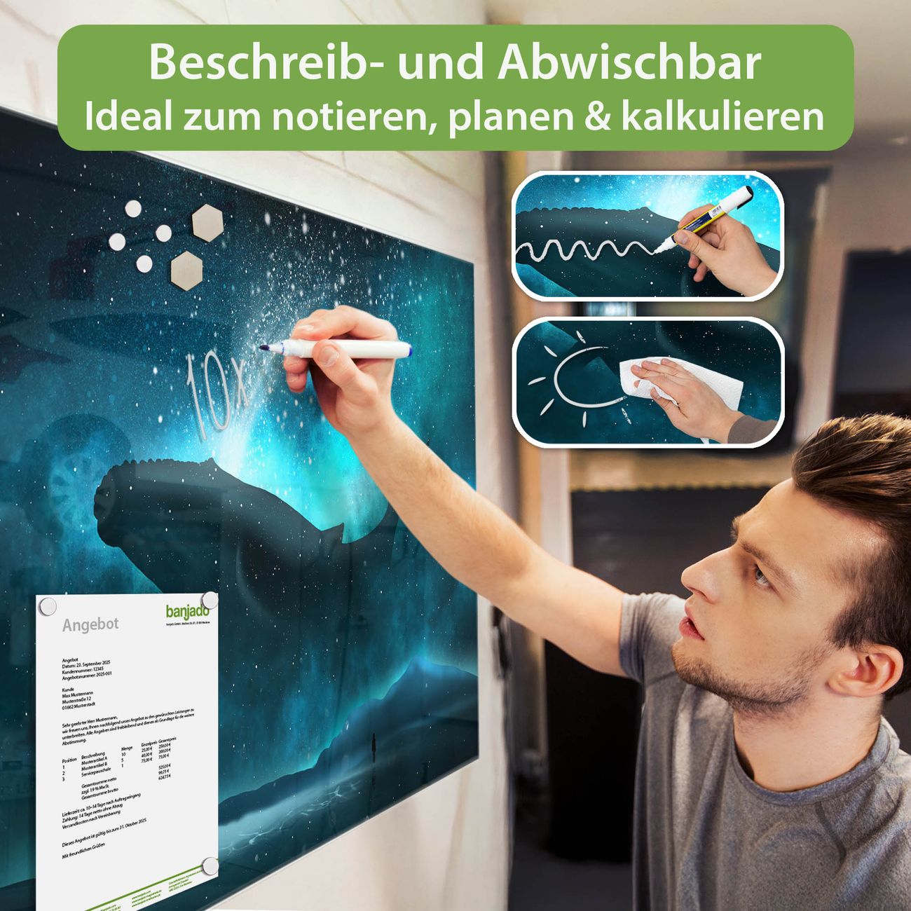 Jede Glas Magnettafel wird in unserer Werkstatt von Hand gefertigt und sorgfältig geprüft. So erhalten Sie ein echtes Qualitätsprodukt, das Funktion und Ästhetik perfekt vereint.?? Warum banjado?