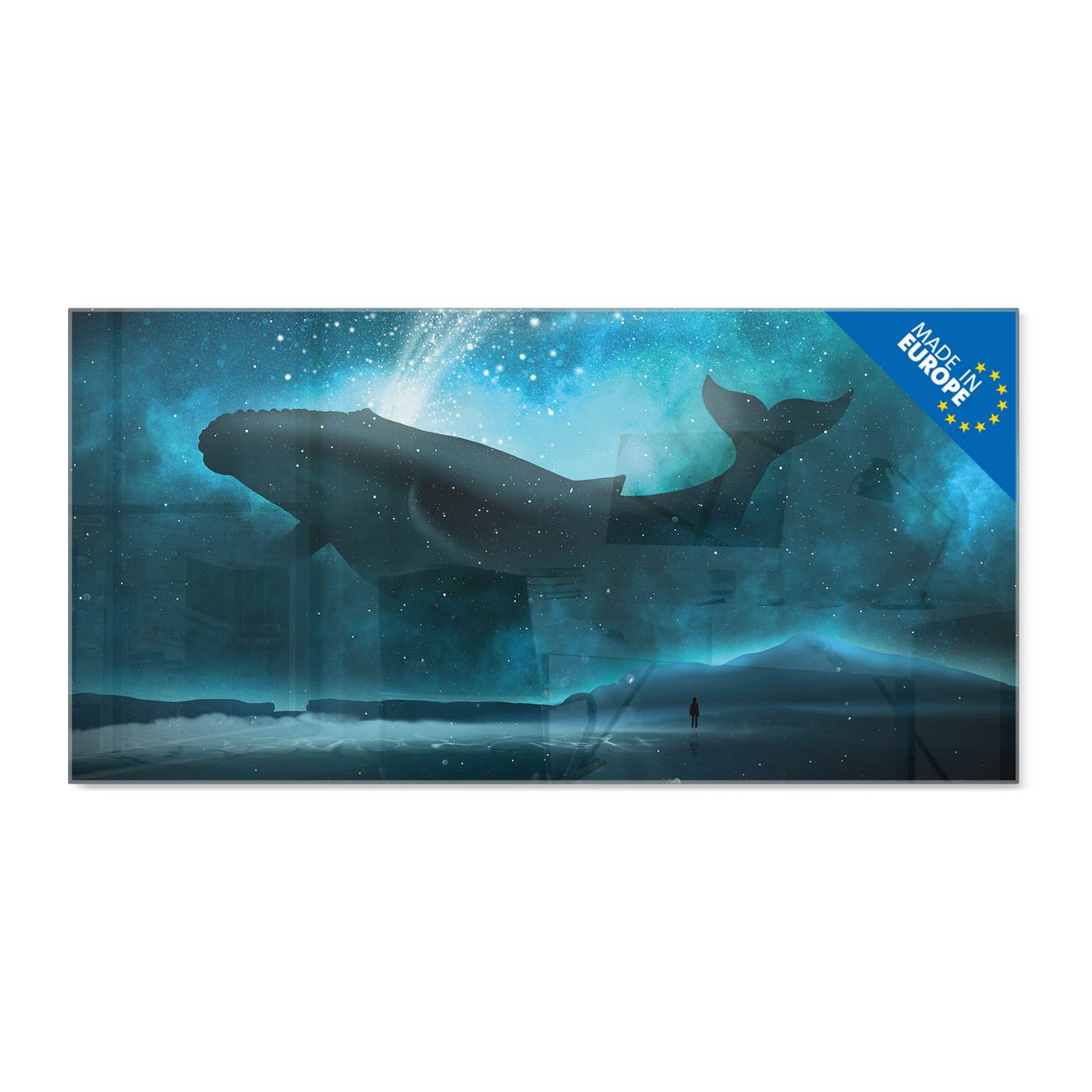 Glas Magnettafel im Querformat Motiv fliegender Wal