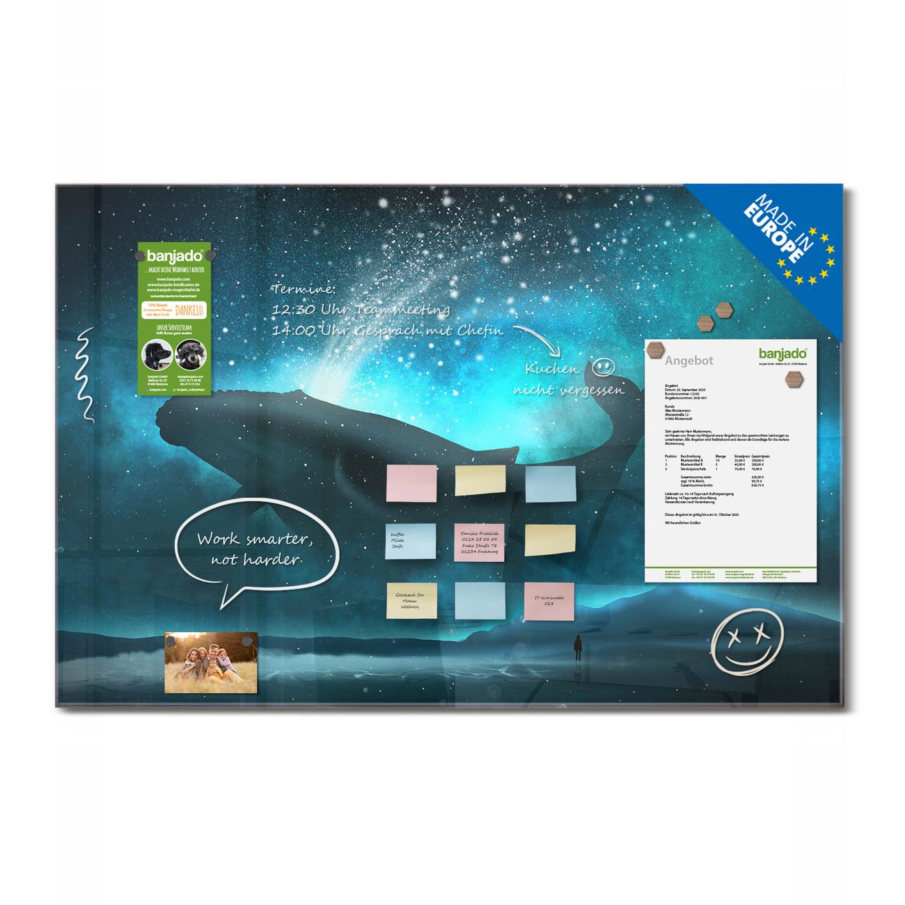 Glas Magnettafel im Querformat Motiv fliegender Wal