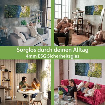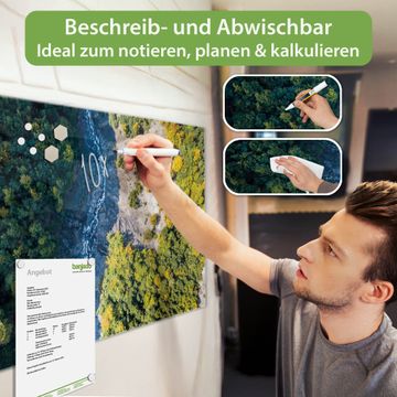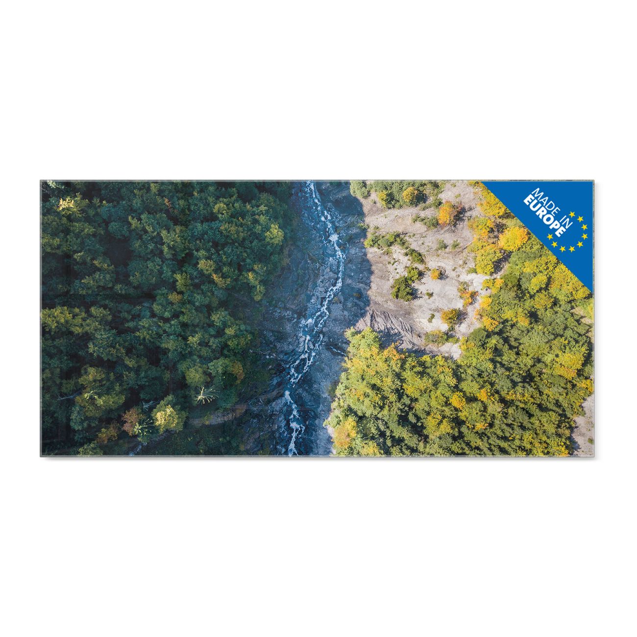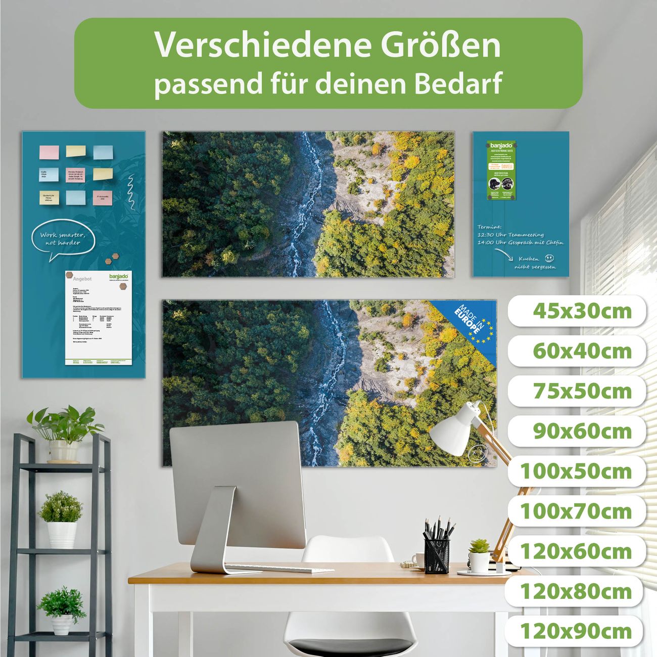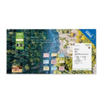 Material: 4mm Sicherheitsglas mit Metallrückwand Eigenschaften: beschreibbar, magnetisch, kratzfest Maße: 100x50x0,6cm, 7,50kg schwer Motiv Nummer 12870 Fluss im Tal Zubehör: inklusive 4 Neodym-Magnete