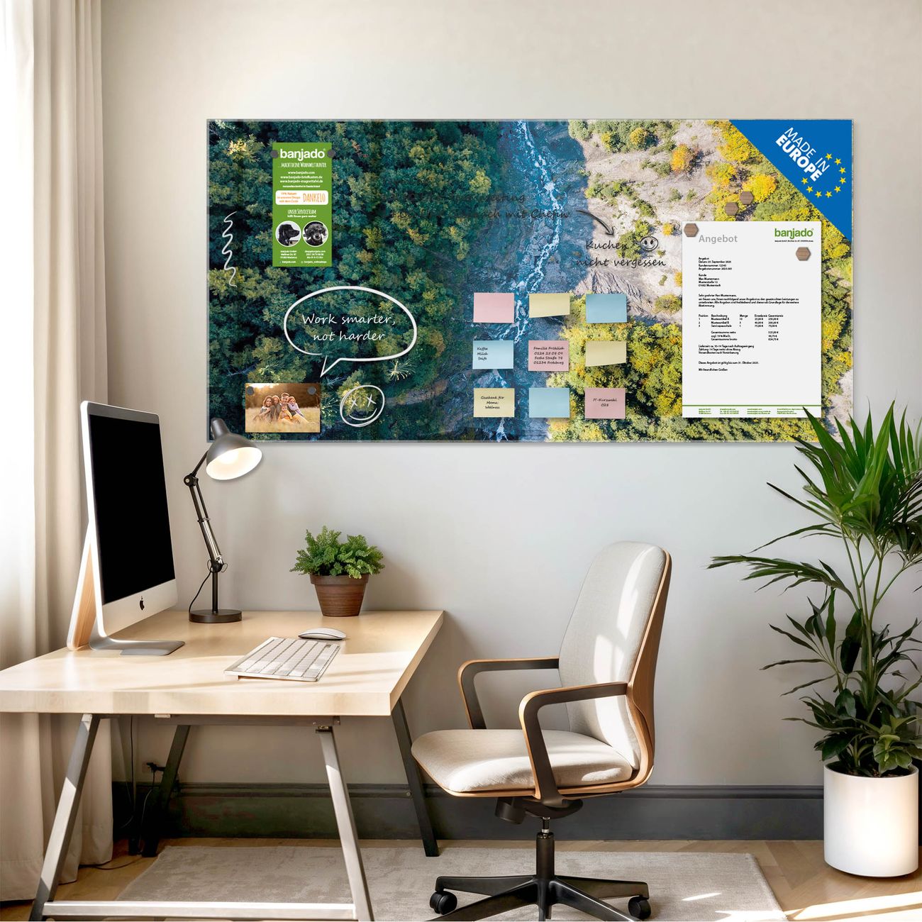 Jede Glas Magnettafel wird in unserer Werkstatt von Hand gefertigt und sorgfältig geprüft. So erhalten Sie ein echtes Qualitätsprodukt, das Funktion und Ästhetik perfekt vereint.?? Warum banjado?