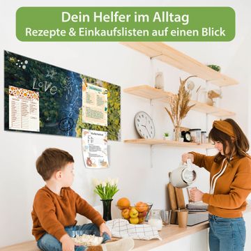 Auf der glatten Glasoberfläche lassen sich Termine, Rezepte oder Notizen ganz einfach mit Kreidestiften festhalten und rückstandslos entfernen. Starke Neodym-Magnete halten Ihre wichtigsten Erinnerungen sicher an Ort und Stelle. So entsteht Ihre ganz persönliche Ideenwand - jeden Tag neu.