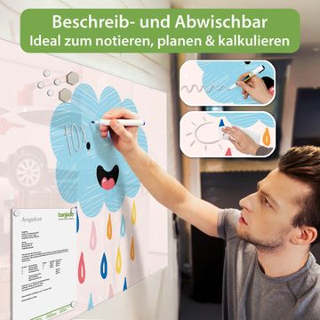 Gefertigt aus gehärtetem Sicherheitsglas mit einer magnetischen Rückwand aus Stahl überzeugt diese Magnettafel durch Stabilität und Langlebigkeit. Die Oberfläche bleibt dauerhaft brillant und pflegeleicht, selbst bei täglicher Nutzung.