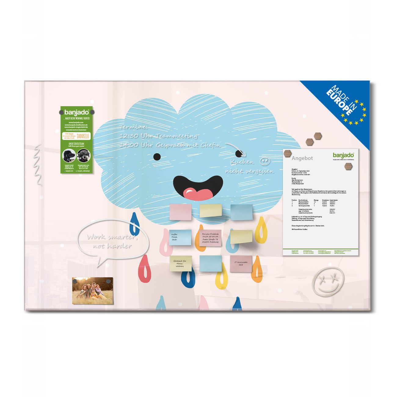 Glas Magnettafel im Querformat Motiv glückliche Regenwolke