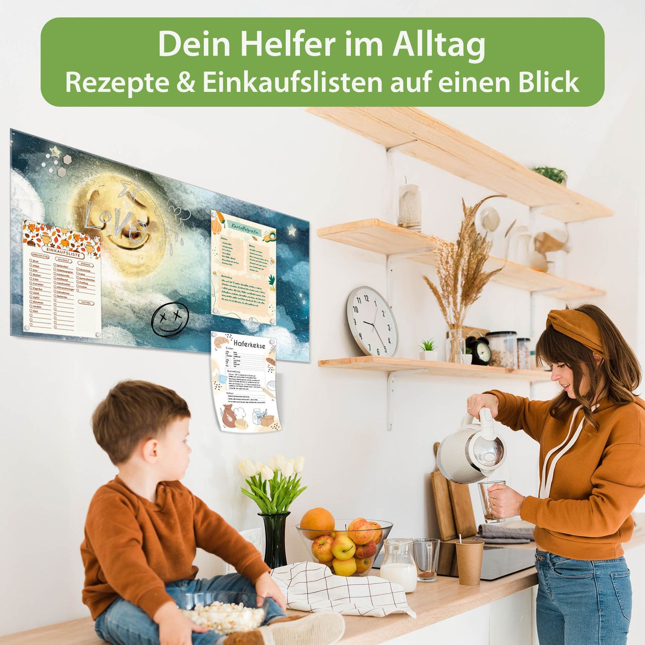 Ein Stück Design, das Ihren Alltag organisiert. Schreiben, heften, inspirieren - alles an einem Ort. Qualität, die man spürt. Montage leicht gemacht. Handwerk mit Herz - veredelt in Sachsen. Einzigartiges Design mit Motiv Motiv Glücksmond Beschreibbare Glasoberfläche, leicht zu reinigen Starke Magnetkraft durch Stahlrückwand Inklusive 4 Neodym-Magneten Flexible Montageoptionen Handveredelt in Sachsen - Qualität, die bleibt
