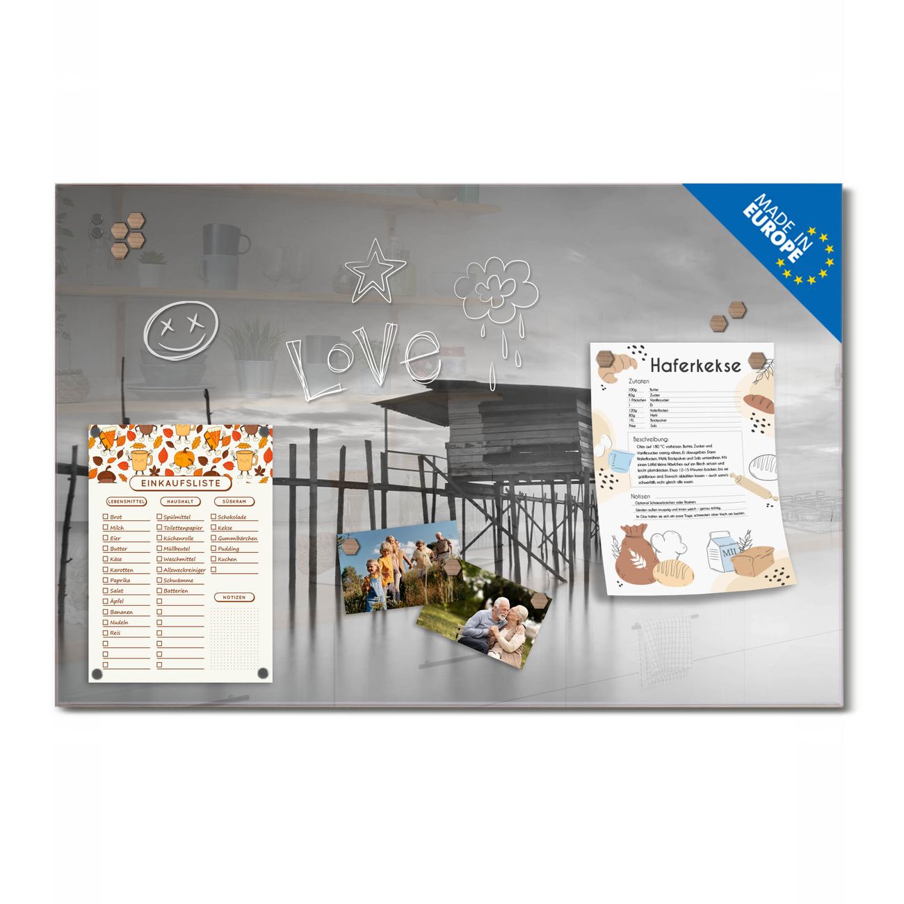 Ein Stück Design, das Ihren Alltag organisiert. Schreiben, heften, inspirieren - alles an einem Ort. Qualität, die man spürt. Montage leicht gemacht. Handwerk mit Herz - veredelt in Sachsen. Einzigartiges Design mit Motiv Motiv Haus am See Beschreibbare Glasoberfläche, leicht zu reinigen Starke Magnetkraft durch Stahlrückwand Inklusive 4 Neodym-Magneten Flexible Montageoptionen Handveredelt in Sachsen - Qualität, die bleibt