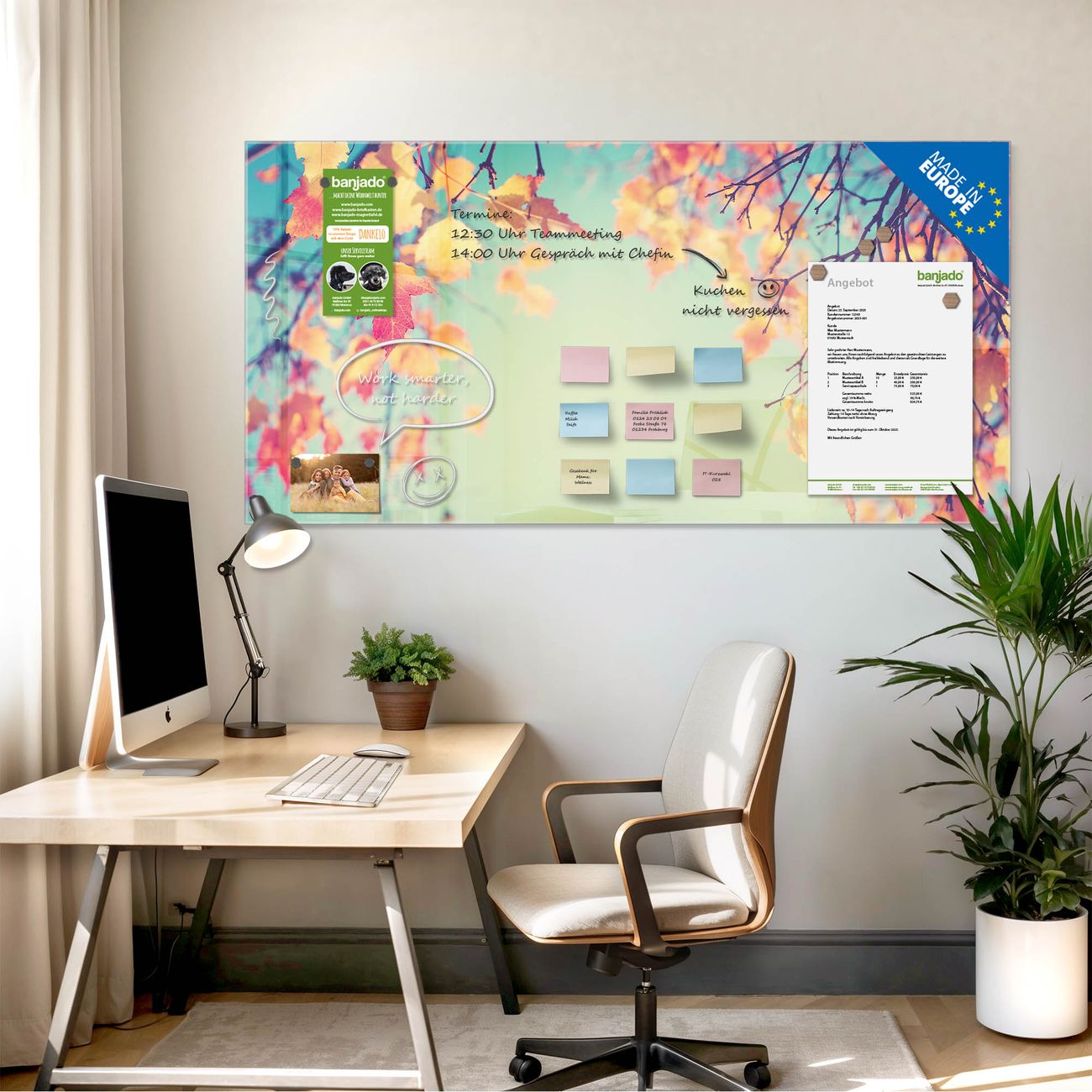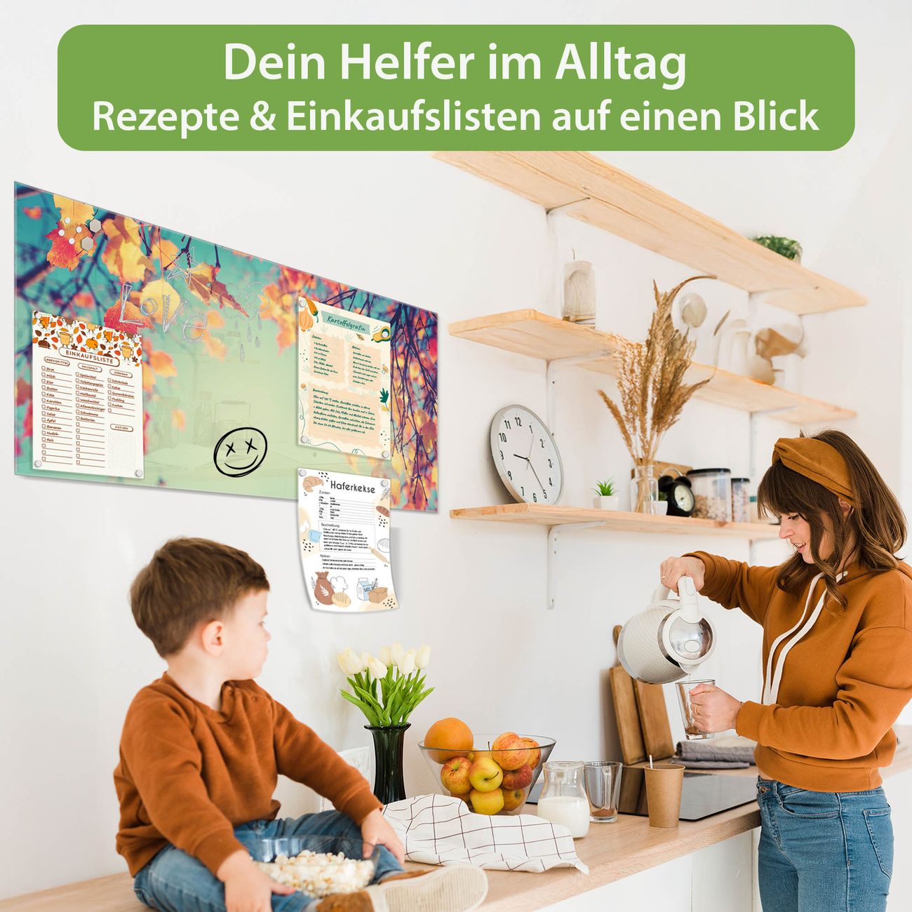 Die banjado Glas Magnettafel mit dem Motiv Motiv Herbst verbindet Funktionalität mit Stil. Sie ersetzt das Zettelchaos durch klare Strukturen und bringt dabei eine warme, natürliche Atmosphäre in Ihr Zuhause. Ob im Büro, in der Küche oder im Eingangsbereich - dieses Design-Board zieht Blicke an und sorgt für Ordnung mit Charakter.