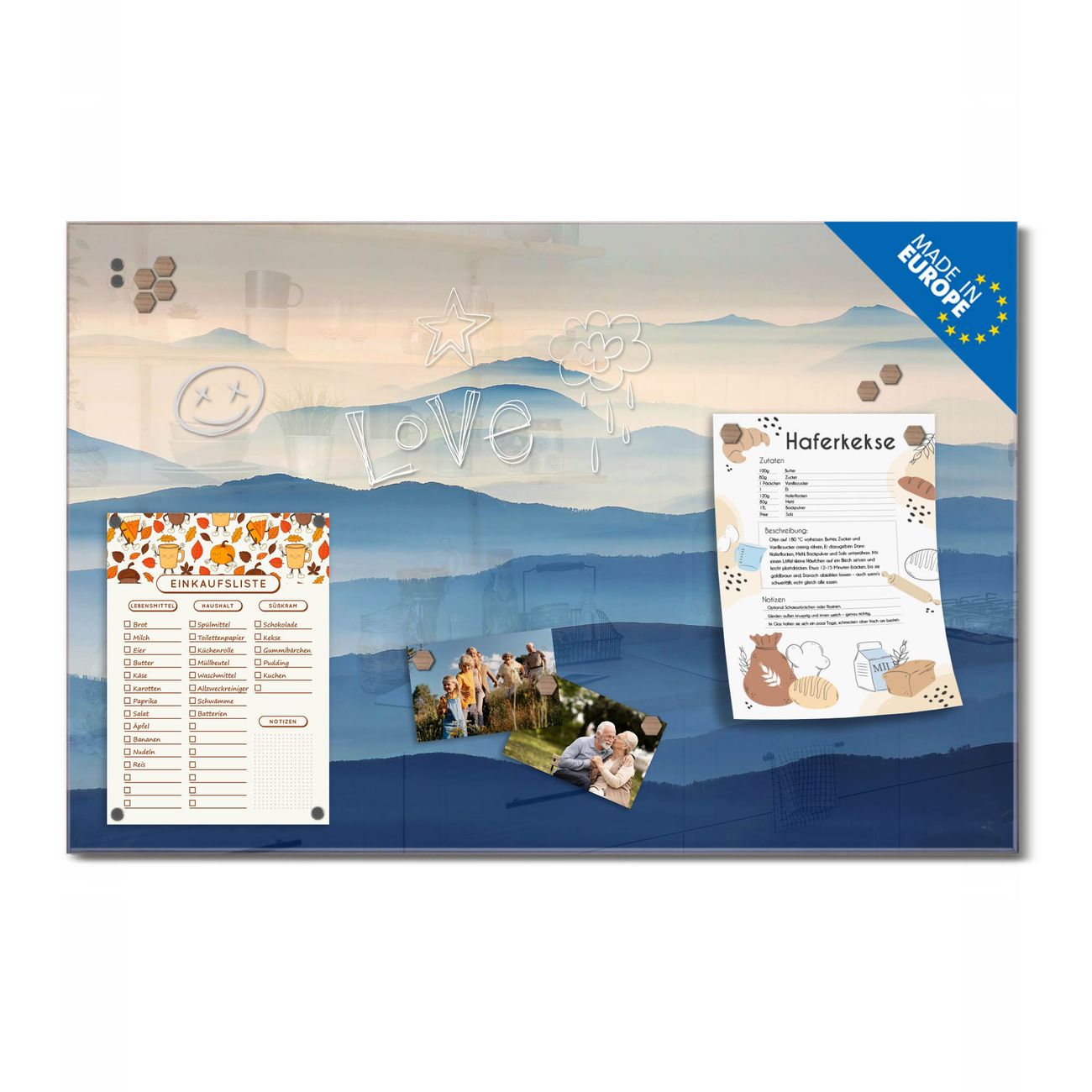 Glas Magnettafel im Querformat Motiv Hinter den Bergen