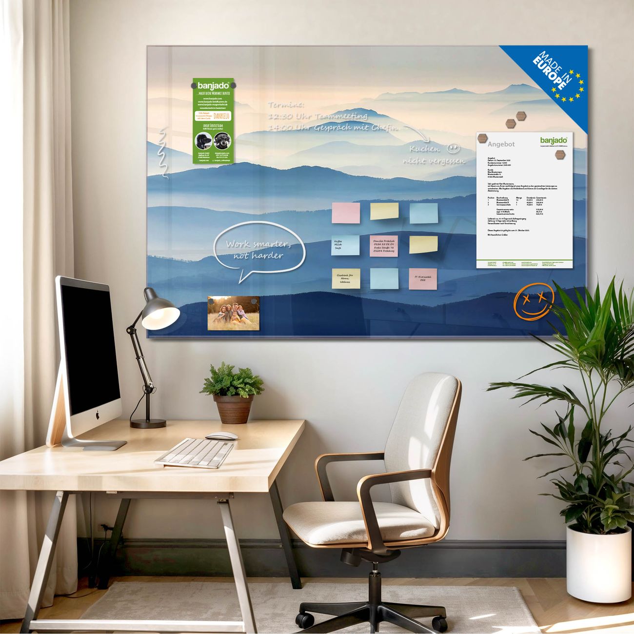 Jede Glas Magnettafel wird in unserer Werkstatt von Hand gefertigt und sorgfältig geprüft. So erhalten Sie ein echtes Qualitätsprodukt, das Funktion und Ästhetik perfekt vereint.?? Warum banjado?