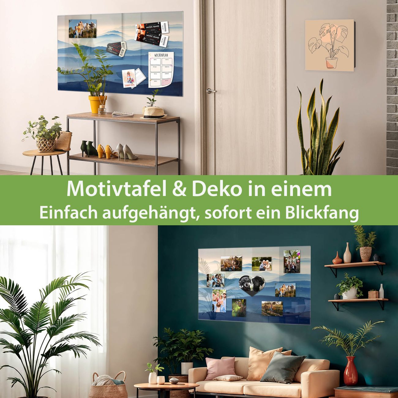 Die banjado Glas Magnettafel mit dem Motiv Motiv Hinter den Bergen verbindet Funktionalität mit Stil. Sie ersetzt das Zettelchaos durch klare Strukturen und bringt dabei eine warme, natürliche Atmosphäre in Ihr Zuhause. Ob im Büro, in der Küche oder im Eingangsbereich - dieses Design-Board zieht Blicke an und sorgt für Ordnung mit Charakter.