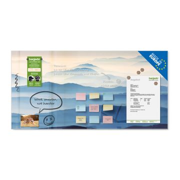 Material: 4mm Sicherheitsglas mit Metallrückwand Eigenschaften: beschreibbar, magnetisch, kratzfest Maße: 120x60x0,6cm, 10,80kg schwer Motiv Nummer 12925 Hinter den Bergen Zubehör: inklusive 4 Neodym-Magnete