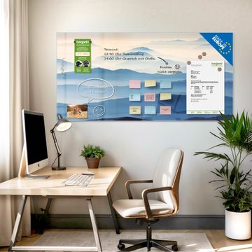 Die banjado Glas Magnettafel mit dem Motiv Motiv Hinter den Bergen verbindet Funktionalität mit Stil. Sie ersetzt das Zettelchaos durch klare Strukturen und bringt dabei eine warme, natürliche Atmosphäre in Ihr Zuhause. Ob im Büro, in der Küche oder im Eingangsbereich - dieses Design-Board zieht Blicke an und sorgt für Ordnung mit Charakter.
