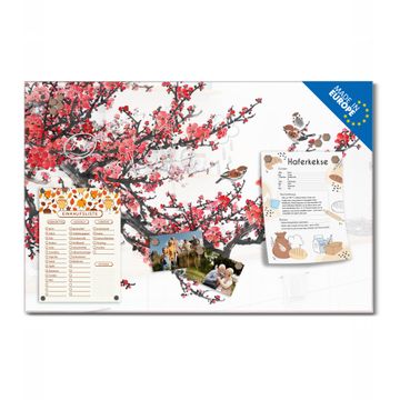 Material: 4mm Sicherheitsglas mit Metallrückwand Eigenschaften: beschreibbar, magnetisch, kratzfest Maße: 75x50x0,6cm, 5,63kg schwer Motiv Nummer 12041 Japanische Blüten 1 Zubehör: inklusive 4 Neodym-Magnete