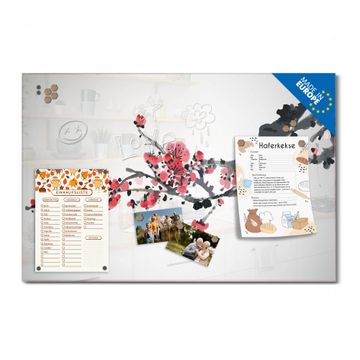 Material: 4mm Sicherheitsglas mit Metallrückwand Eigenschaften: beschreibbar, magnetisch, kratzfest Maße: 75x50x0,6cm, 5,63kg schwer Motiv Nummer 12882 Japanische Blüten 2 Zubehör: inklusive 4 Neodym-Magnete