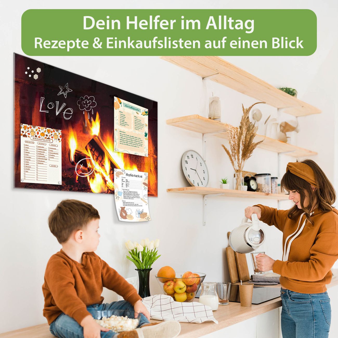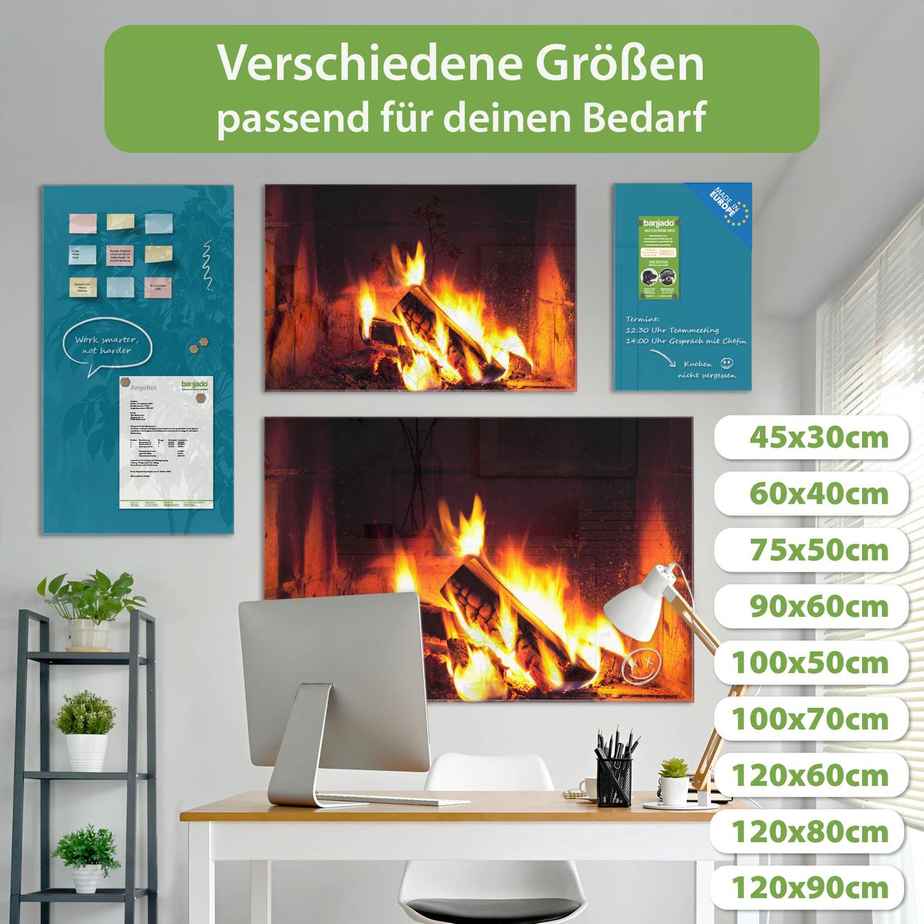 Ein Stück Design, das Ihren Alltag organisiert. Schreiben, heften, inspirieren - alles an einem Ort. Qualität, die man spürt. Montage leicht gemacht. Handwerk mit Herz - veredelt in Sachsen. Einzigartiges Design mit Motiv Motiv Kaminfeuer Beschreibbare Glasoberfläche, leicht zu reinigen Starke Magnetkraft durch Stahlrückwand Inklusive 4 Neodym-Magneten Flexible Montageoptionen Handveredelt in Sachsen - Qualität, die bleibt