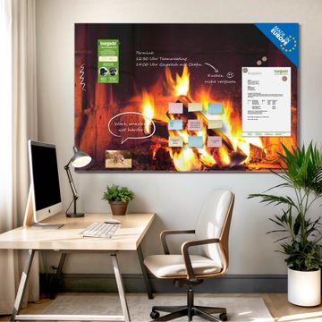 Glas Magnettafel im Querformat Motiv Kaminfeuer