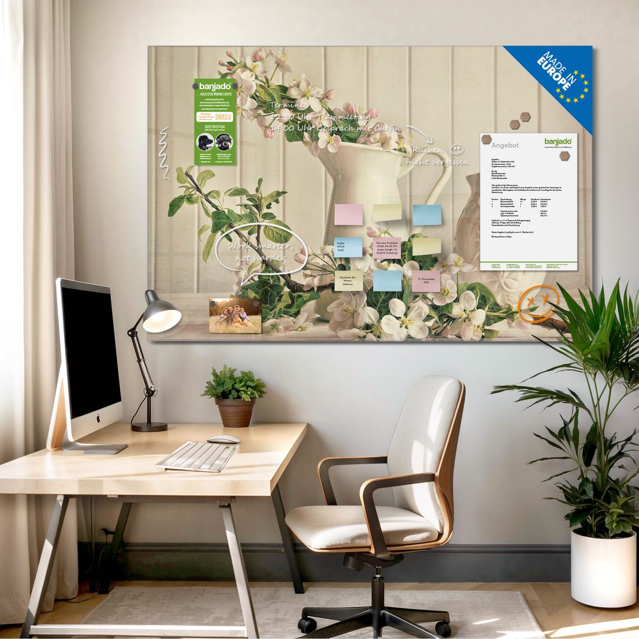 Die banjado Glas Magnettafel mit dem Motiv Motiv Kirschzweige verbindet Funktionalität mit Stil. Sie ersetzt das Zettelchaos durch klare Strukturen und bringt dabei eine warme, natürliche Atmosphäre in Ihr Zuhause. Ob im Büro, in der Küche oder im Eingangsbereich - dieses Design-Board zieht Blicke an und sorgt für Ordnung mit Charakter.