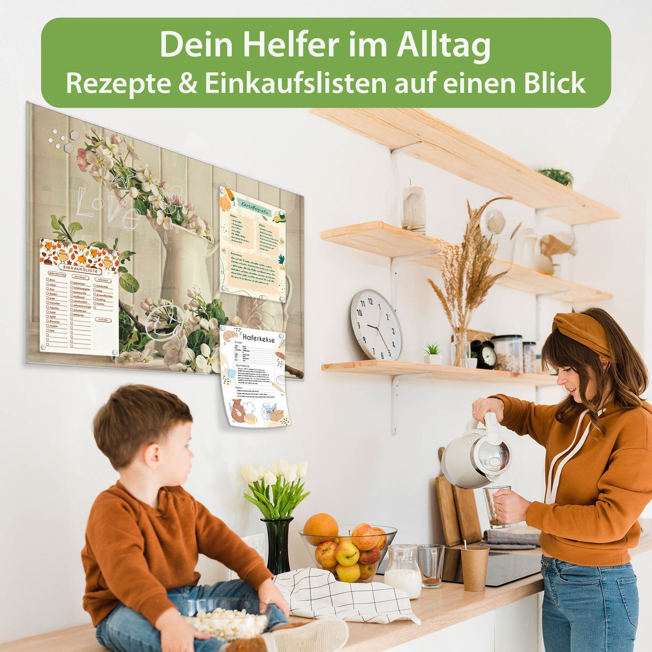 Ein Stück Design, das Ihren Alltag organisiert. Schreiben, heften, inspirieren - alles an einem Ort. Qualität, die man spürt. Montage leicht gemacht. Handwerk mit Herz - veredelt in Sachsen. Einzigartiges Design mit Motiv Motiv Kirschzweige Beschreibbare Glasoberfläche, leicht zu reinigen Starke Magnetkraft durch Stahlrückwand Inklusive 4 Neodym-Magneten Flexible Montageoptionen Handveredelt in Sachsen - Qualität, die bleibt