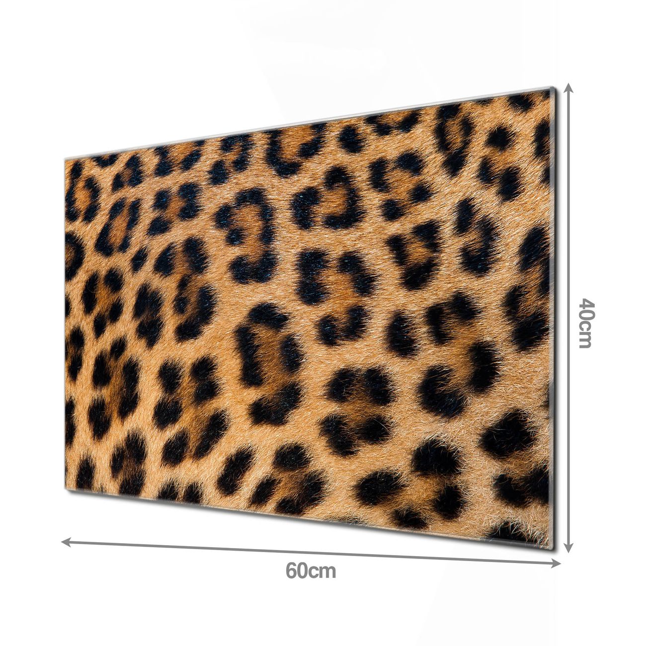 Material  4mm Sicherheitsglas mit Metallrückwand Eigenschaften  beschreibbar, magnetisch, kratzfest Maße  60x40x0,6cm, 3,6kg schwer Motiv  Nummer 12206 Leopardenfell Zubehör  inklusive 4 Neodym-Magnete